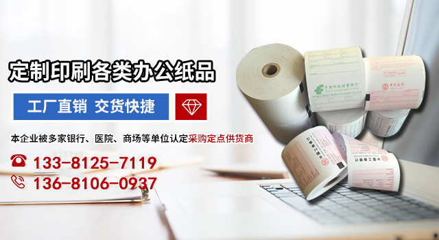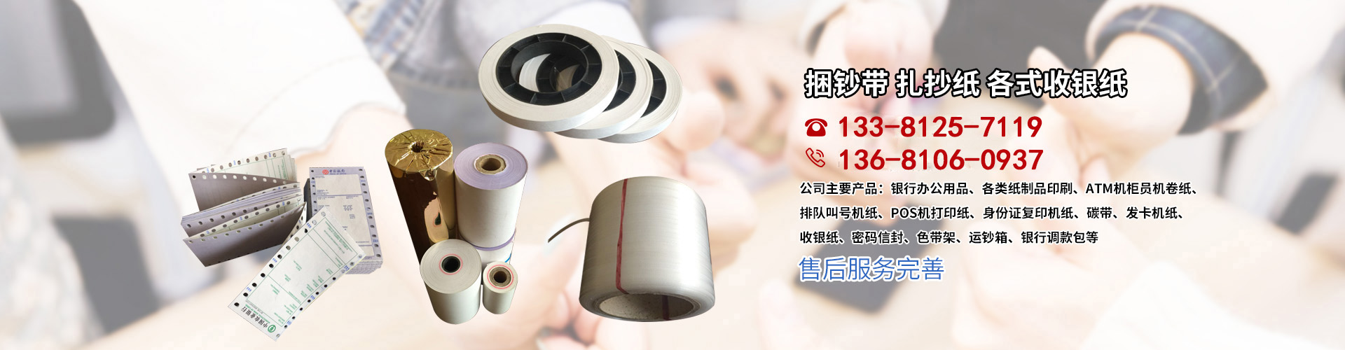 公司主要產(chǎn)品:銀行辦公用品、熱敏紙、ATM機(jī)柜員機(jī)卷紙、排隊(duì)叫號(hào)機(jī)紙、POS機(jī)打印紙、身份證復(fù)印機(jī)紙、碳帶、發(fā)卡機(jī)紙、收銀紙、密碼信封、色帶架、運(yùn)鈔箱、銀行調(diào)款包等。