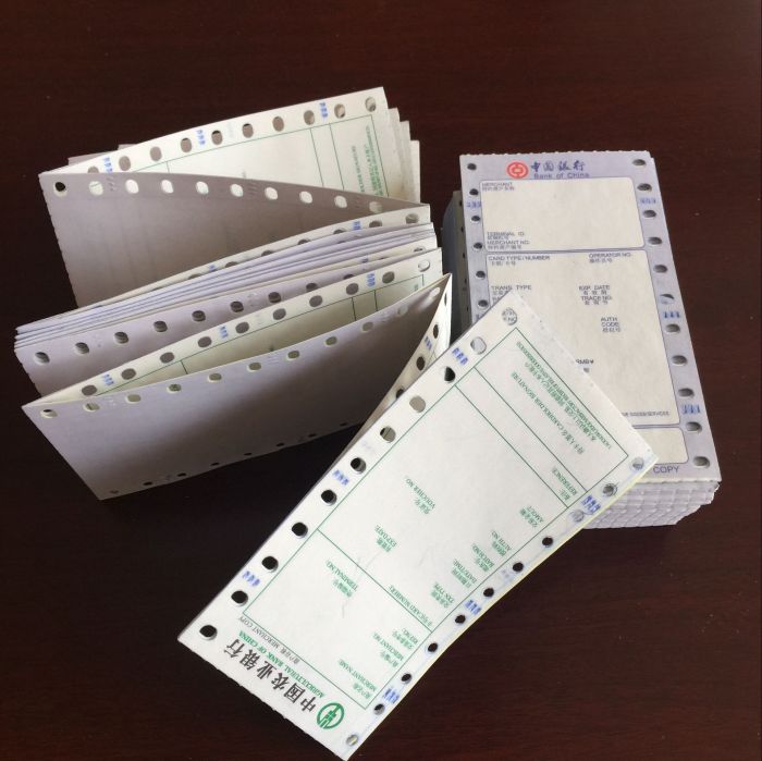 無碳紙涂布技術(shù)生產(chǎn)的自顯色,免色帶打印、色彩清晰,產(chǎn)品兩側(cè)圓孔與橢圓孔配合,定位方便快捷,標(biāo)準(zhǔn)打孔定位。專為POS機(jī)設(shè)計(jì),打印過程自由流暢。