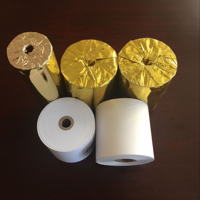 1、雙膠紙:使用普通雙膠紙加工生產(chǎn)的收銀紙,全部是單層的,紙面上沒(méi)有任何涂層,靠色帶在上面打印出字的收銀紙。